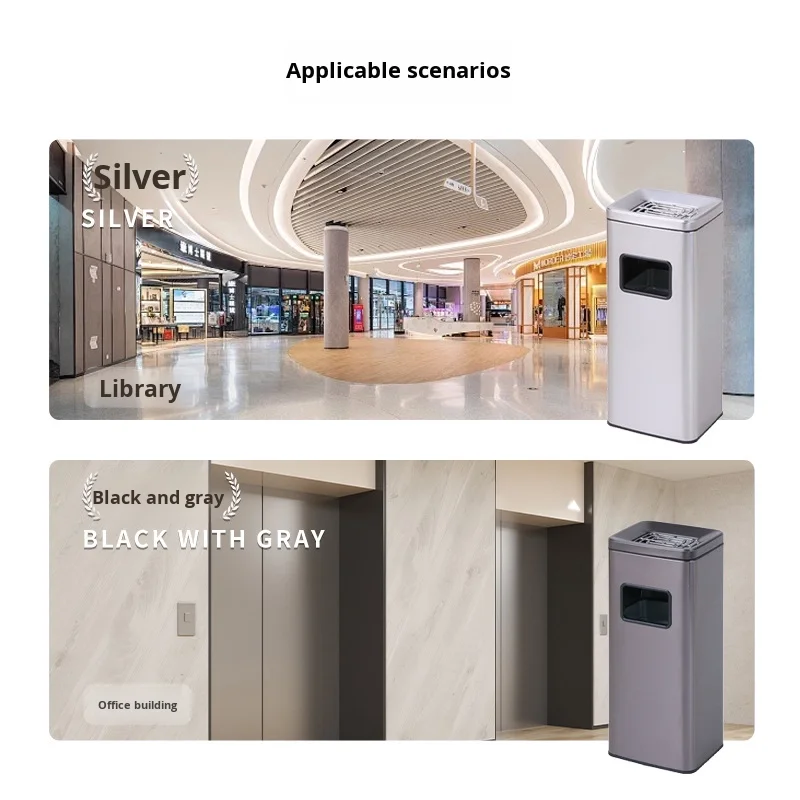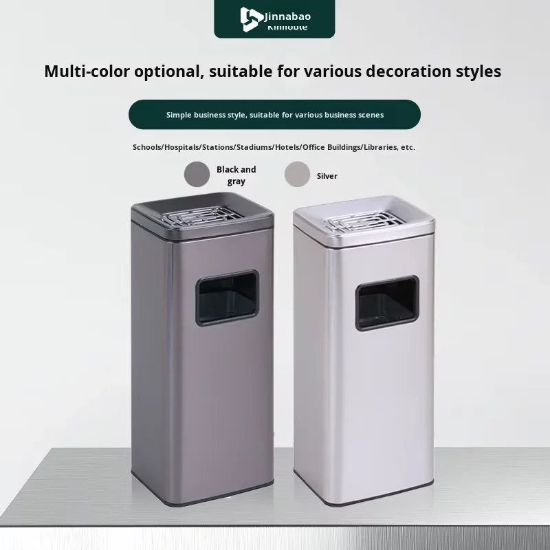 304 Stainless Steel Vertical Ashtray with Open Top Structure Independent Cigarette Butt Collection Smoking Trash Can