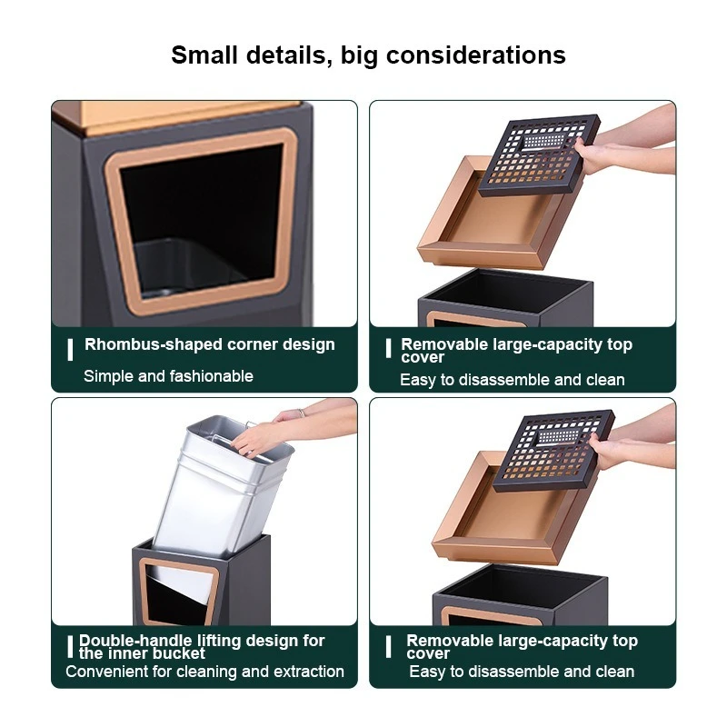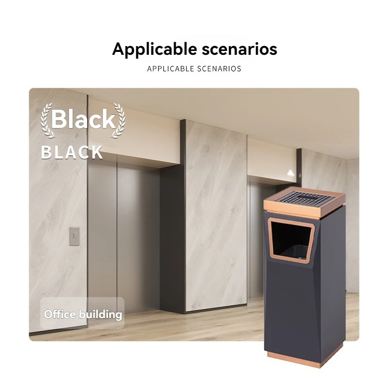 High-End Stainless Steel Square Ashtray Trash Can Floor-Standing Without Lid Eco-friendly Commercial Luxury Lobby Use