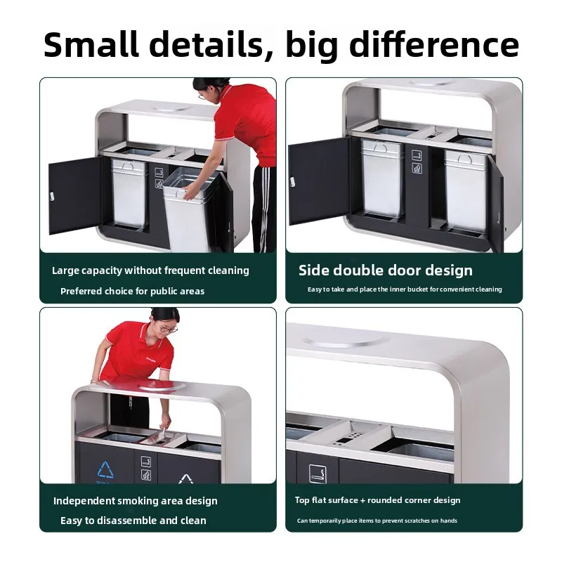 Manufacturer Direct Supply Municipal Public Street Sanitation Trash Can Four-Section Large Capacity Inner Outer Double Bin
