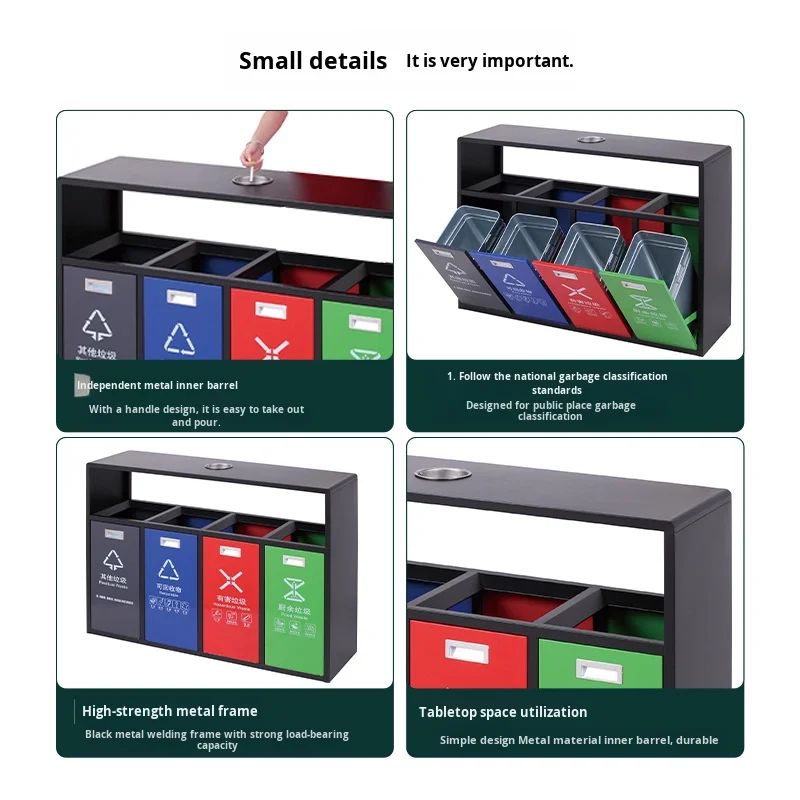 Outdoor Open Top Eco-friendly Stainless Steel Large Double Bin Trash Can for Parks Scenic Residential Areas Four Waste