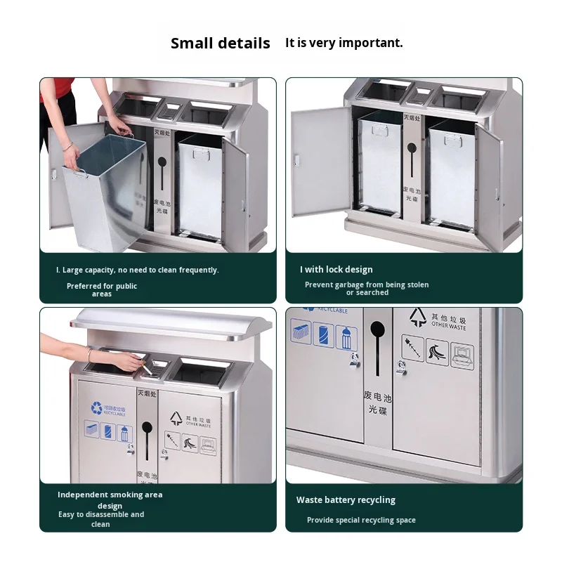 Thickened Stainless Steel Square Outdoor Without Lid Standing Trash Can Waste Bin for Fruit Peels